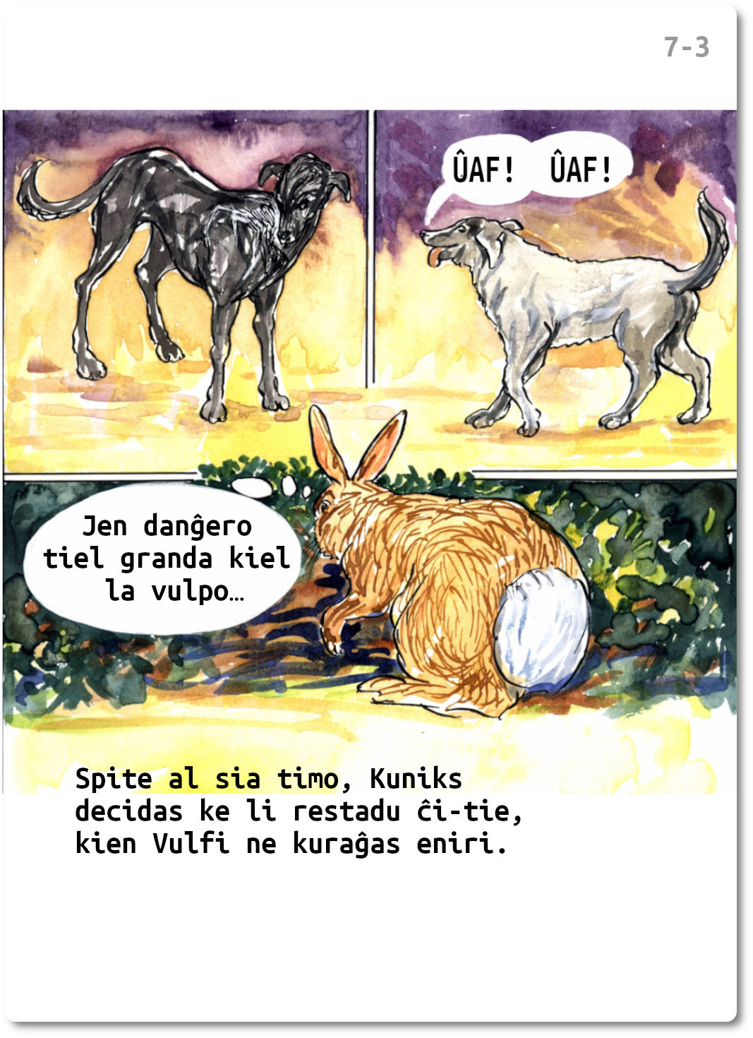 Por eskapi la danĝeron de Vulfi la vulpo, nia